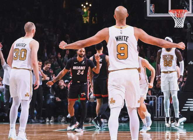凯尔特人这边全场命中21记三分,其中末节命中10记三分。这次怀特发挥出色,三分14中9拿到全场最高的33分,外加5篮板6助攻4盖帽,正负值+27全场最高。布朗也延续出色的表现,18中9拿到30分9篮板7助攻,个人连续6场比赛拿到30+得分。